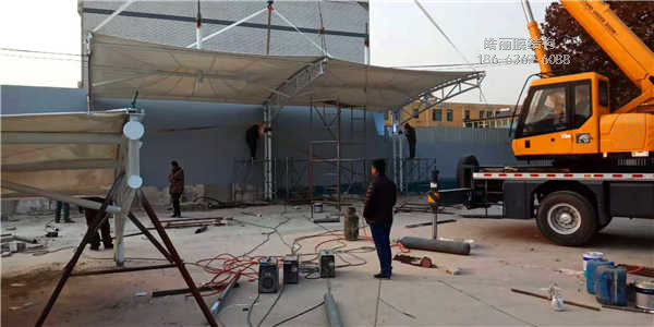 膜結(jié)構(gòu)充電樁,建設(shè)單位,保定市榮清國控集團(tuán)有限公司,地點(diǎn),交通運(yùn)輸管理站,本工程采用鋼材規(guī)121✘3.5行架立柱,114✘4 89✘3.5行架梁,膜布PVDF1100克刀掛工藝,膜布拉力5200牛,膜布特點(diǎn),拉力強(qiáng),耐候性自潔性高,持久耐用.